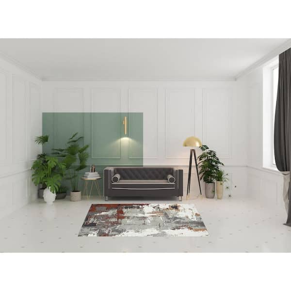 8 Round Gray Abstract Washable Area Rug Runner Rug