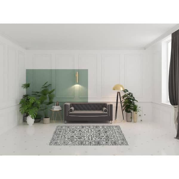 8 Round Gray Floral Washable Area Rug Runner Rug