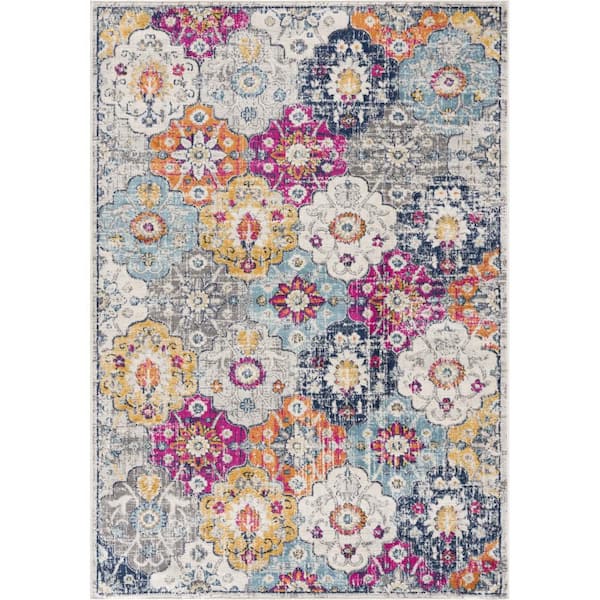 8 Round White Geometric Washable Area Rug Runner Rug