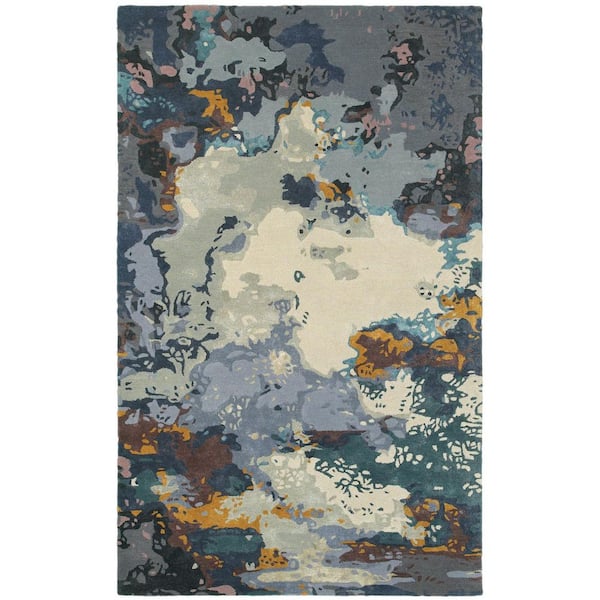 8 X 10 Blue, Gray Abstract Washable Area Rug Runner Rug