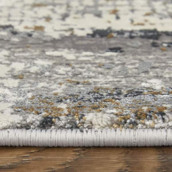 8 X 11 Gray, Ivory, Gold Abstract Area Rug