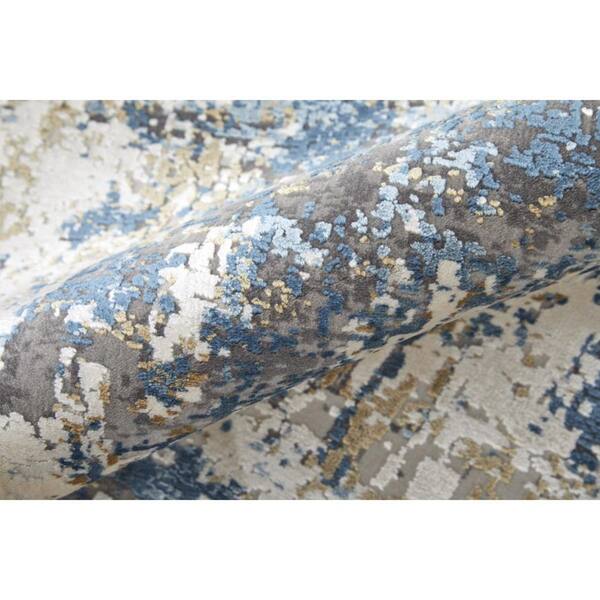 8 X 11 Ivory, Tan, Blue Abstract Area Rug