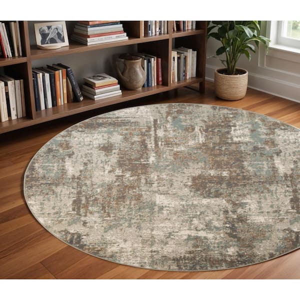 8 ft. Round Blue Abstract Washable Area Rug Runner Rug
