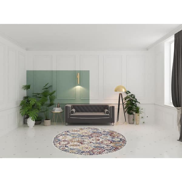 8 ft. Round Blue Medallion Washable Area Rug