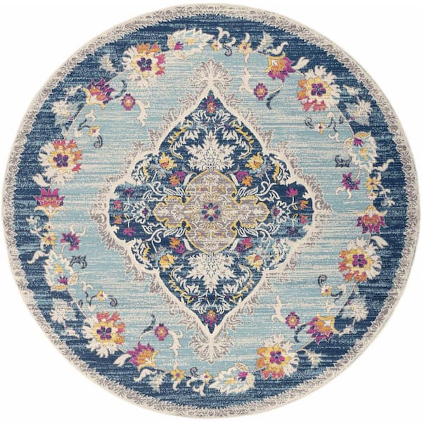 8 ft. Round Blue Oriental Washable Area Rug Runner Rug