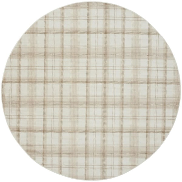 8 ft. Round Blue Plaid Washable Area Rug