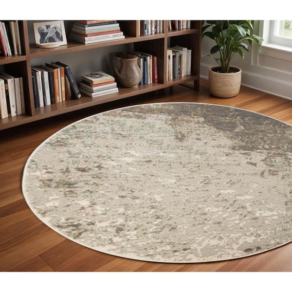 8 ft. Round Gray Abstract Washable Area Rug Runner Rug