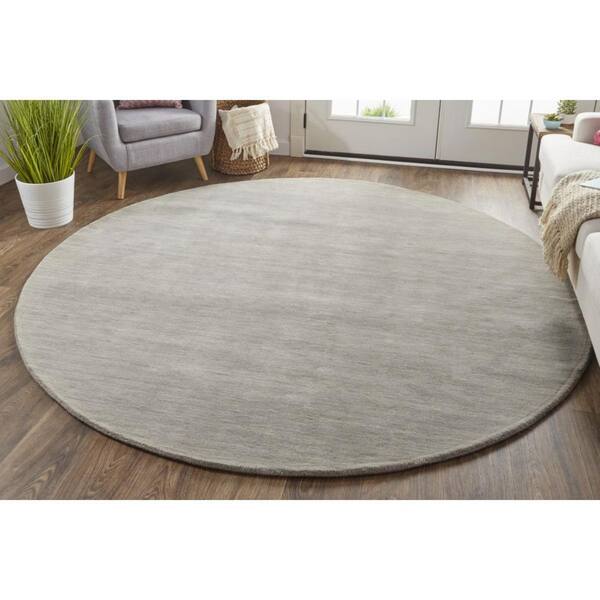 8 ft. Round Gray, Ivory Solid Color Area Rug
