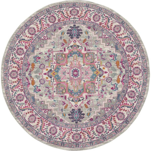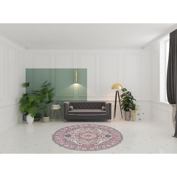 8 ft. Round Gray Oriental Washable Area Rug Runner Rug