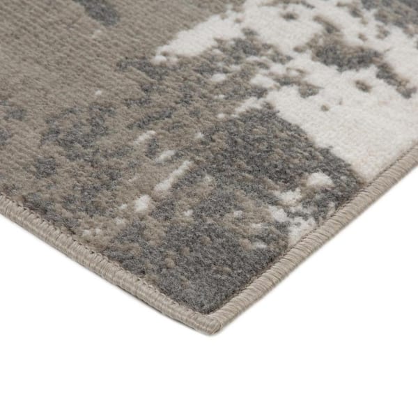 8 ft. Round Ivory and Gray Abstract Area Rug