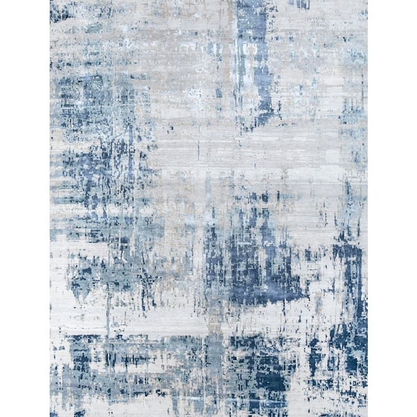 8 ft. x 10 ft. Blue Abstract Hand Knotted Area Rug