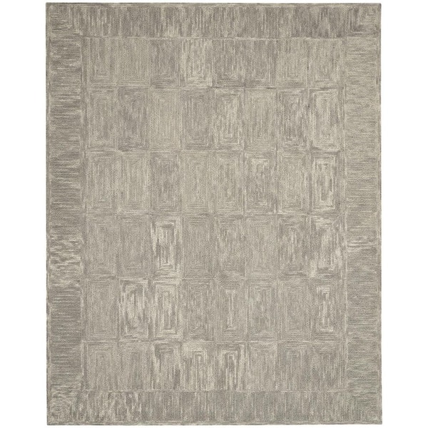 8 ft. x 10 ft. Gray Geometric Washable Area Rug
