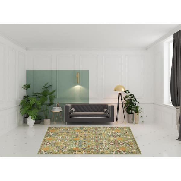 8 ft. x 10 ft.Green Floral Power Loom Area Rug