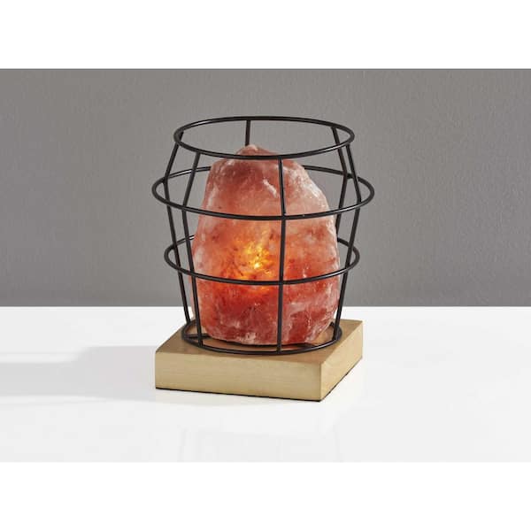8 in. Brown Standard Light Bulb Bedside Table Lamp with Black Metal Shade