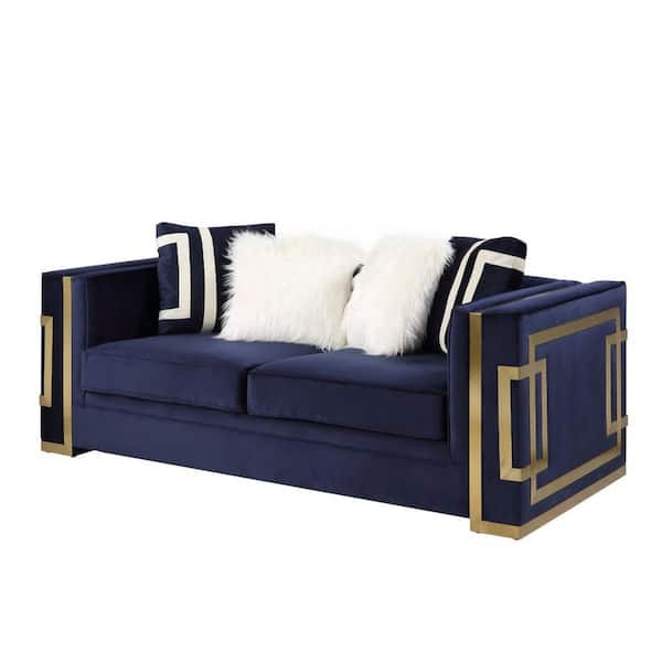 80 in. Blue Solid Faux Leather 2-Seater Loveseat