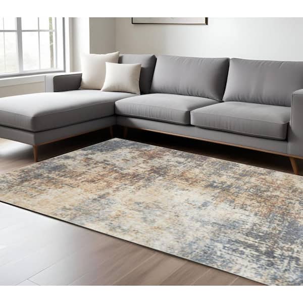 9 ft. x 12 ft. Blue And Ivory Abstract Distressed Washable Area Rug