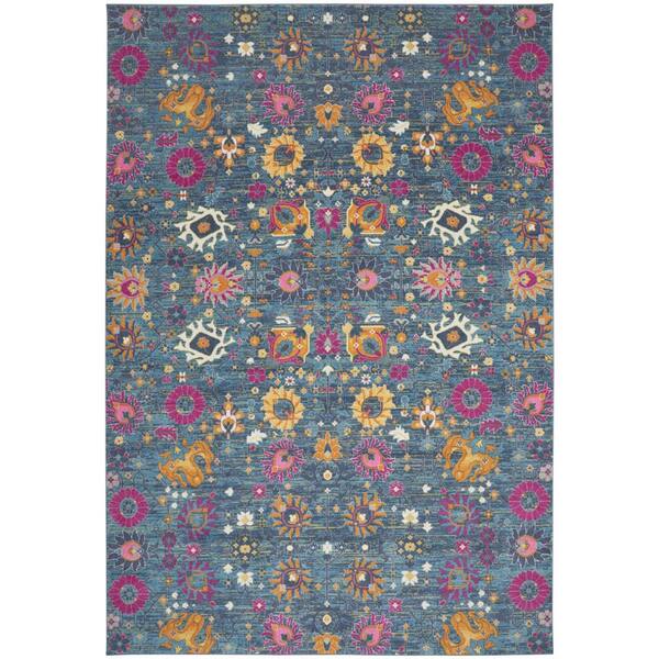 9 ft. x 12 ft. Blue Floral Washable Area Rug Rectangle Rug