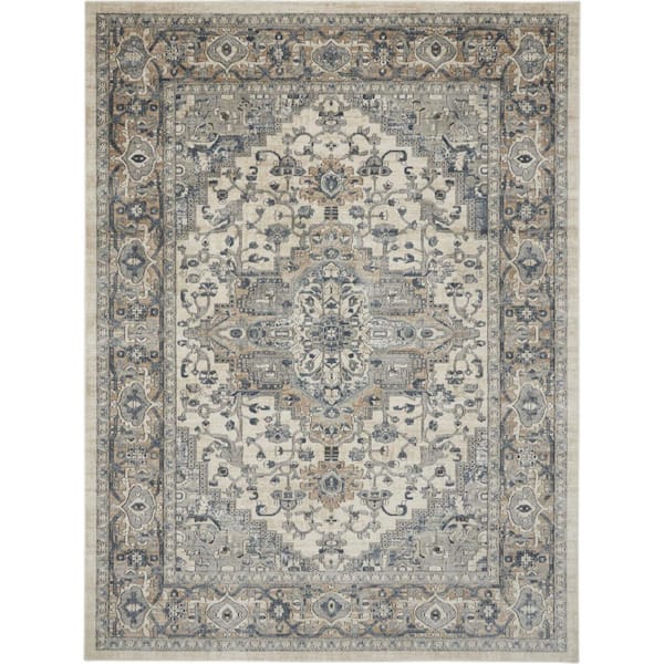 9 ft. x 12 ft. Gray Medallion Washable Area Rug Runner Rug