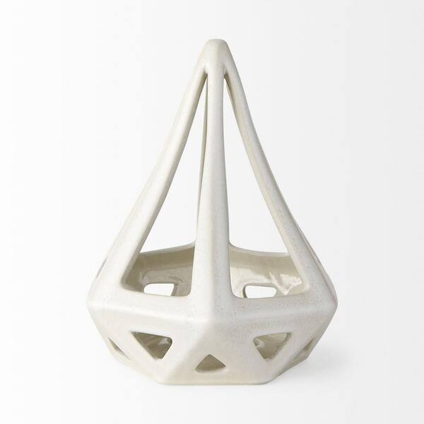 9 in. White Crackle Glaze Ceramic Conical Sculpture
