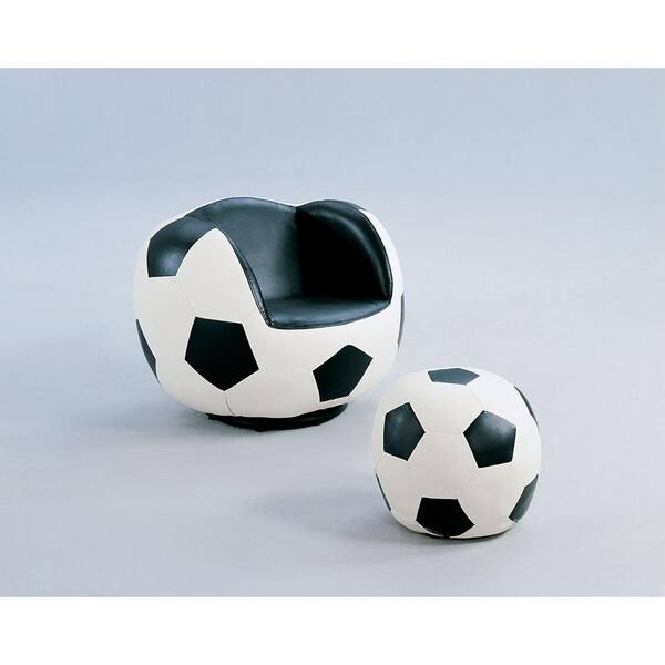 Amelia 2-Pieces White Black Leather Chair and Ottoman