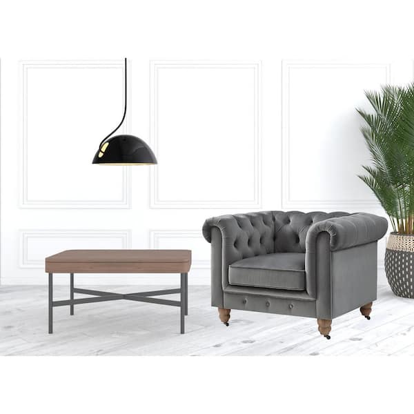 Amelia 30.3 in. Dark Gray Velvet Arm Chair with Tufted Cushions