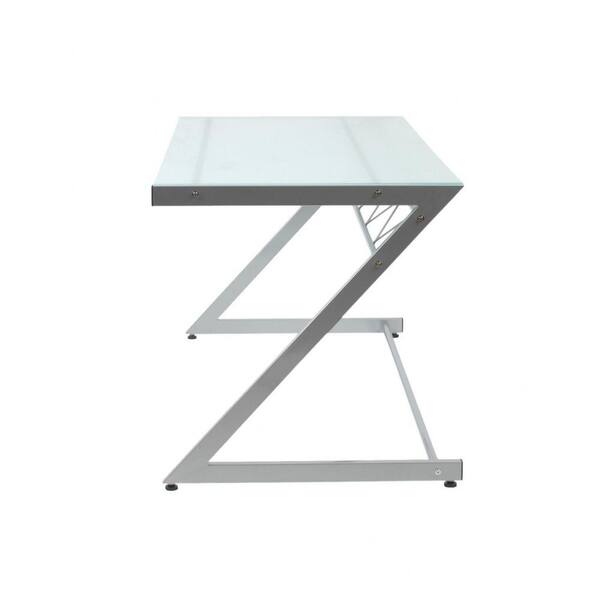Amelia 61 in. Rectangular Silver Glass Writing Desk with Glass Top