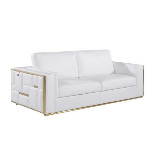 Amelia 89 in. Square Arm Italian Leather Rectangle Sofa in. White