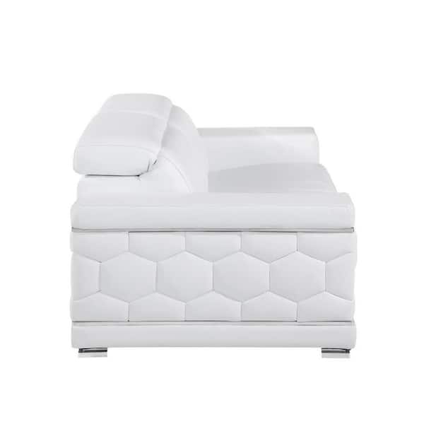 Amelia 89 in. Square Arm Leather Rectangle Sofa in White
