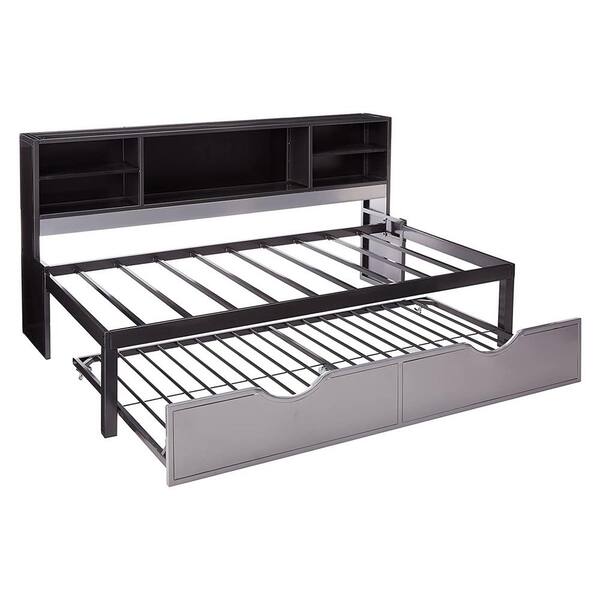 Amelia Gray Metal Tube Twin Bed with Bookcase Headboard