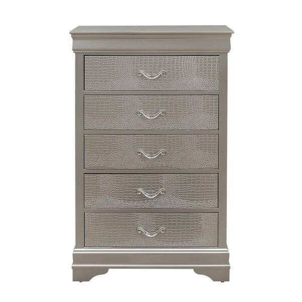 Amelia Silver Finish 5-Drawer Chest of Drawers ( 16 in W. x 48 in. H)