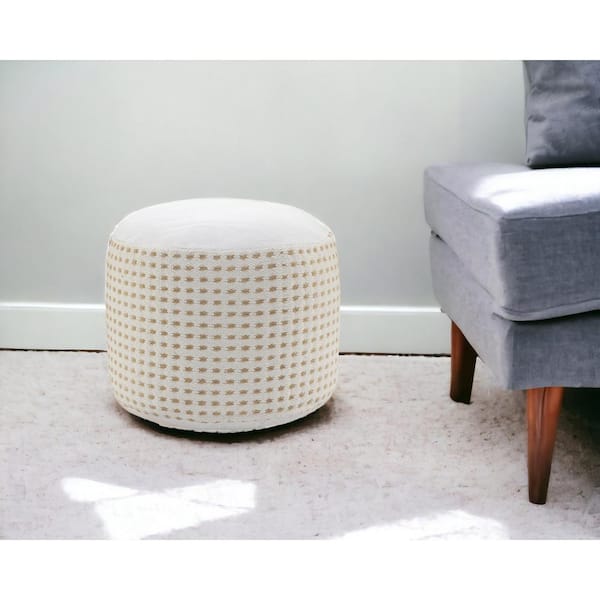Amelia White Fabric Round Accent Small (Under 22 in. ) Ottoman