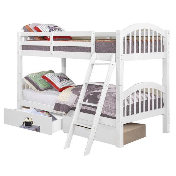 Amelia White Twin Over Twin Arched Wood Bunk Bed with 2-Drawers
