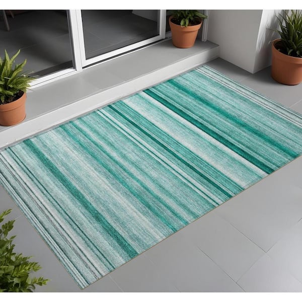 Aqua 2 ft. x 3 ft. Woven Striped Polyester Rectangle Indoor/Outdoor Area Rug