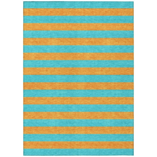Aqua 5 ft. x 8 ft. Woven Striped Polyester Rectangle Indoor/Outdoor Area Rug