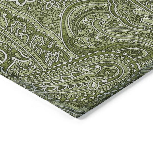 Artichoke Green, Olive Green 3 ft. x 5 ft. Woven Paisley Polyester Rectangle Indoor/Outdoor Area Rug