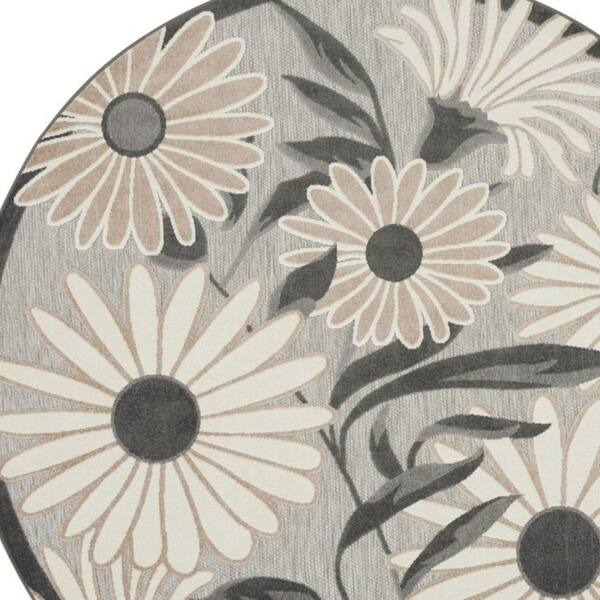 Beige 8 ft. Round Loomed Floral Polypropylene Round Indoor/Outdoor Area Rug