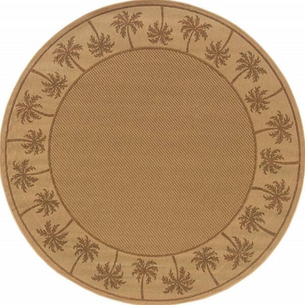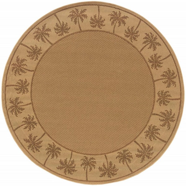 Beige 8 ft. x 8 ft. Loomed Border Polypropylene Round Indoor/Outdoor Area Rug