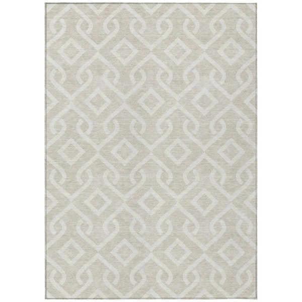 Beige, Ivory 3 ft. x 5 ft. Woven Geometric Polyester Rectangle Indoor/Outdoor Area Rug