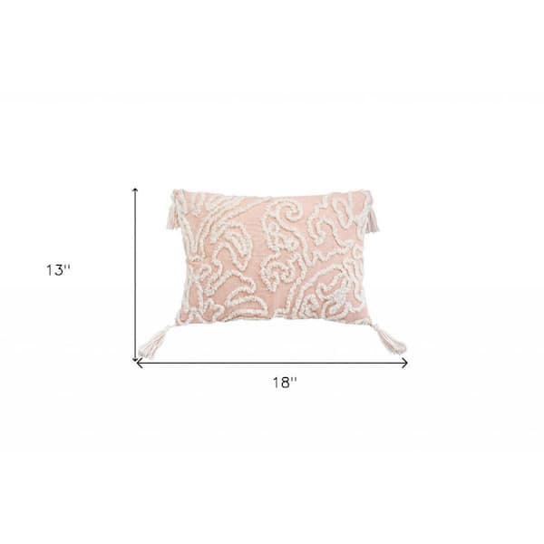 Beige, Ivory Damask Polyester 13 in. x 18 in. Throw Pillow