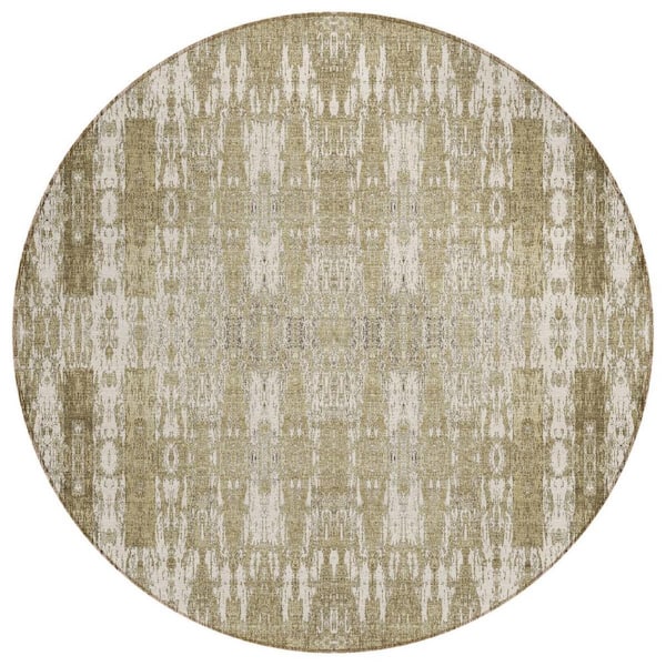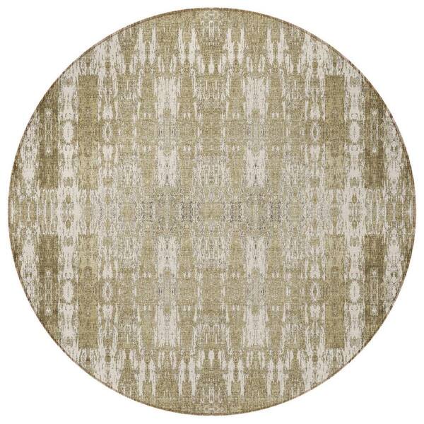 Beige, Ivory, Tan 8 Round ft. Woven Moroccan Polyester Round Indoor / Outdoor Area Rug