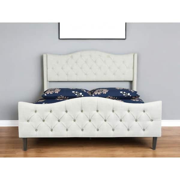 Beige Metal Frame King Panel Bed with Upholstered;Tufted