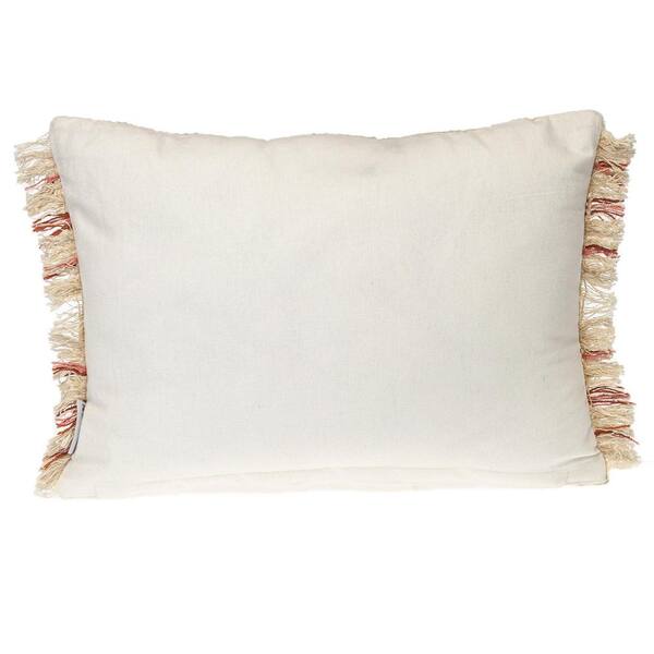 Beige, Pink Striped Polyester 14 in. x 20 in. Throw Pillow