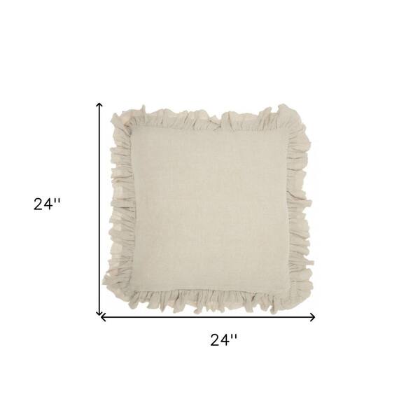 Beige Solid Polyester 24 in. x 24 in. Throw Pillow