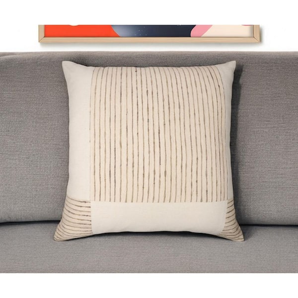 Beige, White Plaid Polyester 24 in. x 24 in. Throw Pillow