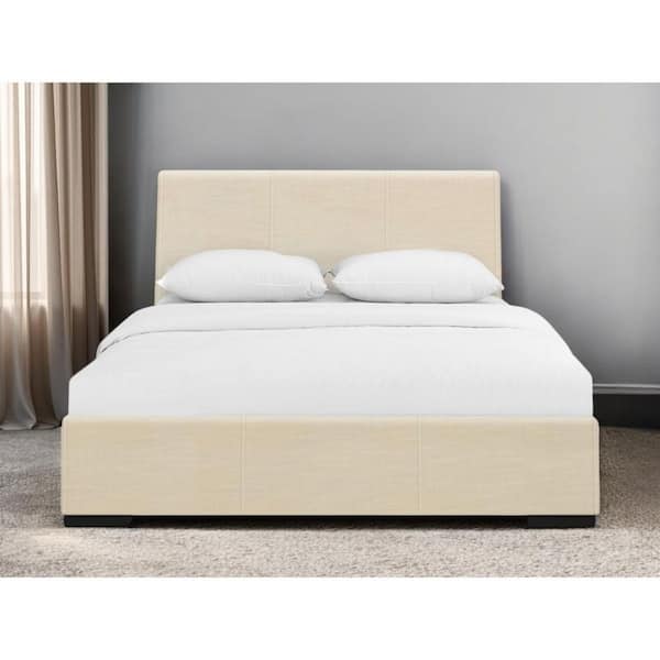 Beige Wood Frame Queen Panel Bed