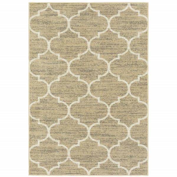 Beige and Ivory 5 ft. x 7 ft. Geometric Power Loom Stain Resistant Area Rug