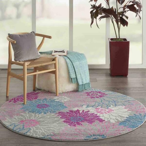 Bernadette Gray 4 ft. Round Floral Polypropylene Area Rug