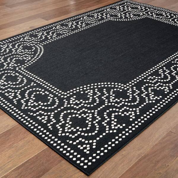 Black, Ivory 9 ft. x 13 ft. Loomed Border Polypropylene Rectangle Indoor/Outdoor Area Rug