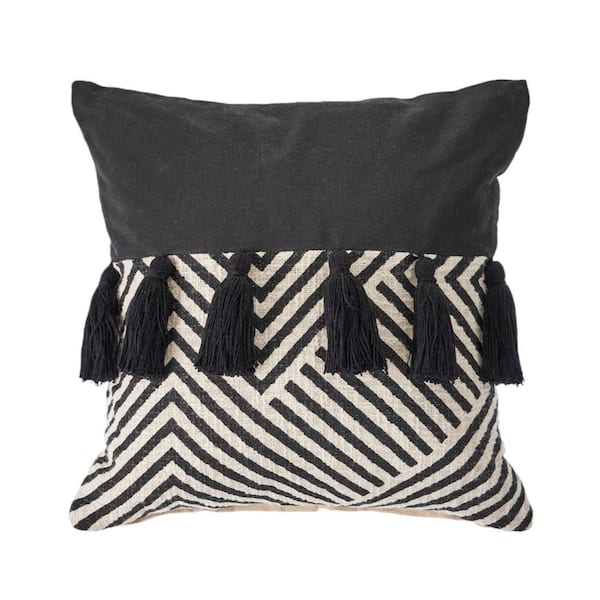 Black, White Geometric Polyester 20 in. x 20 in. Throw Pillow (Set of 2)