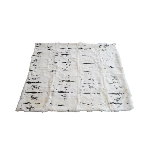 Black, White No Pattern and Not Solid Color Rabbit Fur Throw Blanket